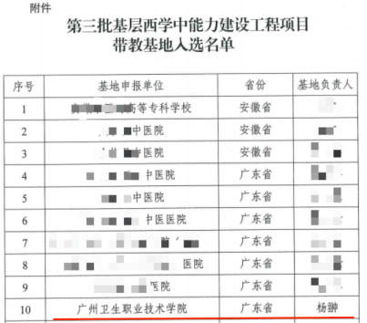 根据《关于遴选基层西学中能力建设工程项目带教中心(基地)的通知》要求,近日,国家卫生健康委能力建设和继续教育中心确定了第三批基层西学中能力建设工程带教基地名单,广州卫生职业技术学院名列其中。