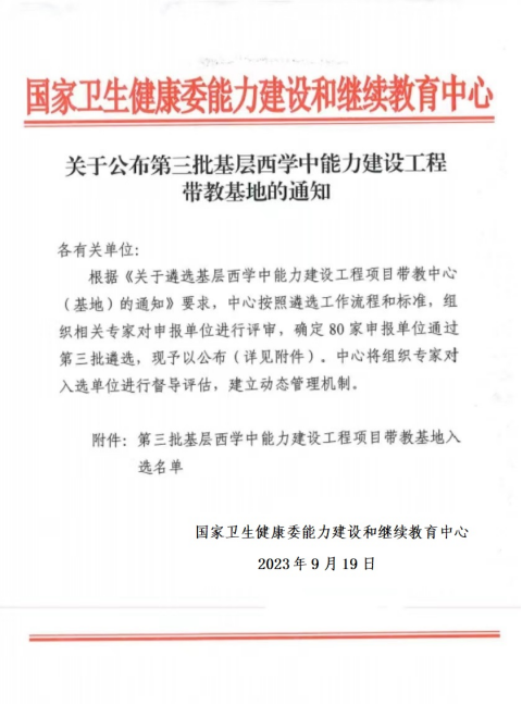 喜讯!我校入选第三批基层西学中能力建设工程带教基地