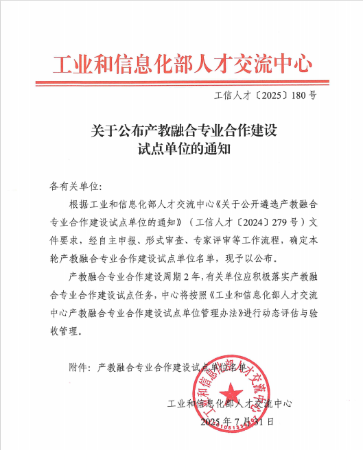 近日,工业和信息化部人才交流中心发布《关于公布产教融合专业合作建设试点单位的通知》,我校健康大数据管理与服务专业成功入选产教融合专业合作建设试点单位!