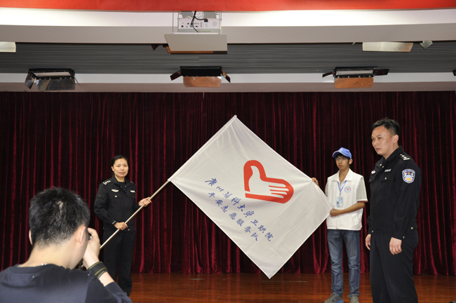 4月9日下午4:30分,广州医科大学卫生职业技术学院从化校区平安志愿服务队授旗仪式在从化校区学术报告厅隆重举行,由此我院第一支平安志愿服务队正式成立。