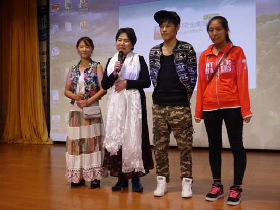活动结束之际,我院三位学生代表还上台给艾辛导演献上了洁白的哈达,以表达对她特别是对革命前辈们最真诚的敬意和谢意。