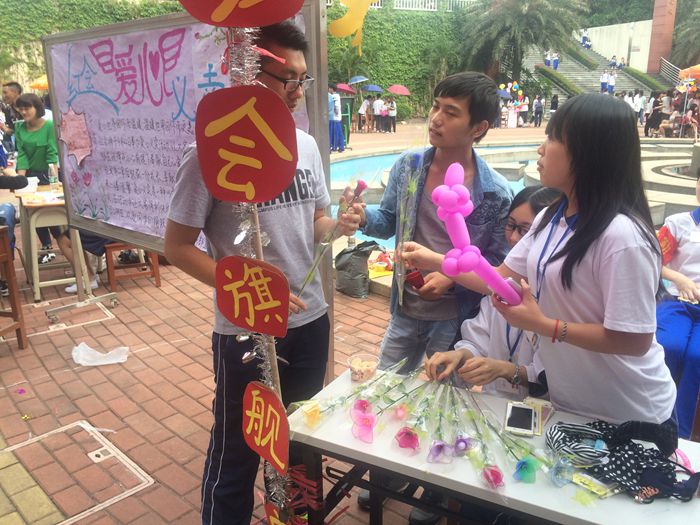 2015年4月22日,由团委学生会生活部、勤工部联合举办的“游园会”活动和红十字会主办的爱心义卖活动在学院教学楼水池旁同时开展,活动燃起了同学们的无限激情,使他们在欢乐之际也了献出自己的爱心。
