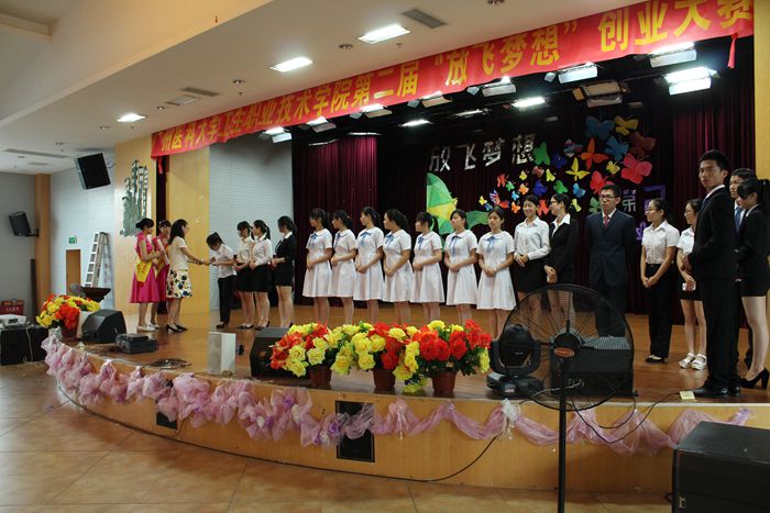 2015年5月13日我院举行第二届创业大赛总决赛。此次大赛由团委学生会和职业生涯发展协会共同举办,在江高校区师生活动中心举行。岭南创业学院职业生涯教练黄立君先生、广州梦不落服饰有限公司黄健伟总裁和南方人才网招聘经理林晓欢先生出席了此次大赛,陈少萍副科长为大赛致开幕词。