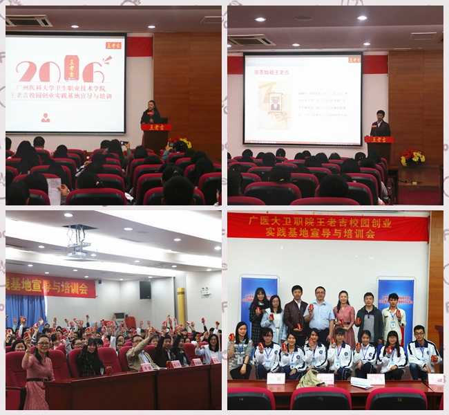 此前,为了响应李克强总理关于“大众创业,万众创新”的号召,我院学生科就业指导中心在院领导卢书记的带领下,与广州王老吉大健康产业有限公司(以下简称“王老吉”)合作,拟共同设立“王老吉校园创业实践基地”,王老吉创业项目依托我院药学系校园药店,由江高校区的学生团队引领从化、越秀校区学生开展创业实践活动,为广大学生群体提供一个创业实践的平台。