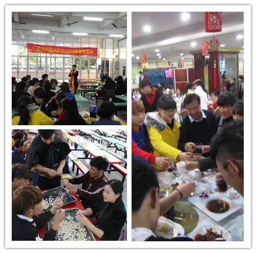 2月7日(除夕),我院在除夕夜为留校的民族生准备了丰盛的团年饭。全体民族生与民族生管理老师、值班宿管和保安,在我院江高校区饭堂共进晚餐。学生科科长林丹霞也专程来到学校,跟同学们和值班的老师拜年并一起吃团年饭。