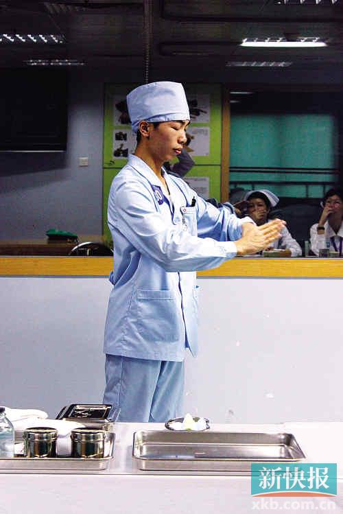 来自全省各地级市中职医护院校的73名“准护士”集聚一堂,来自广州卫生学校三年级的熊俊峰格外显眼,他也是此次竞赛的唯一男护士。他告诉记者:“男护士细心程度不亚于女护士。而遇到输尿管处理时,男护士胆大心细可以使问题得到很好的处理。”