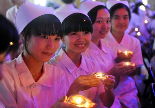 新华网:授帽燃烛迎接护士节 作者:新华网 来源: 发布时间:2012-05-13 浏览次数: 次 【字体:小 大】 5月11日,为庆祝5月12日国际护士节,广州医学院为护理学院的500多名毕业生举行毕业授帽仪式。授帽仪式上,毕业生们从前辈手中接过象征南丁格尔精神的蜡烛,并在南丁格尔画像前宣誓。 5月11日,广州医学院的老师为该校2012届护理专业的一名男生授帽。 新华社记者 陈晔华 摄 5月11日,广州医学院护理学院2012届的毕业生手持象征南丁格尔精神的蜡烛。记者 陈晔华 摄 5月11日,广州医学院护理学院2012届的毕业生在授帽仪式上宣誓。记者 陈晔华 摄 原文地址: 分享到: 【打印正文】