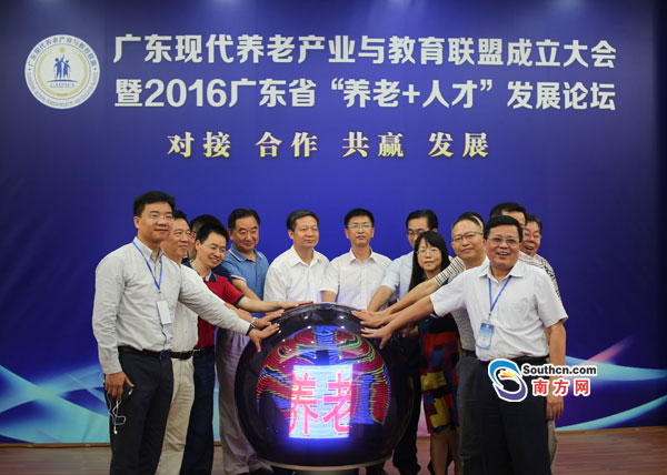 省民政厅等政府代表与19家单位领导出席活动,宣告广东现代养老产业与教育联盟正式成立。南方日报记者 罗斌豪 摄