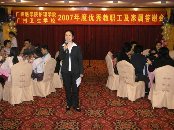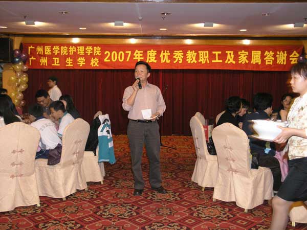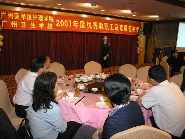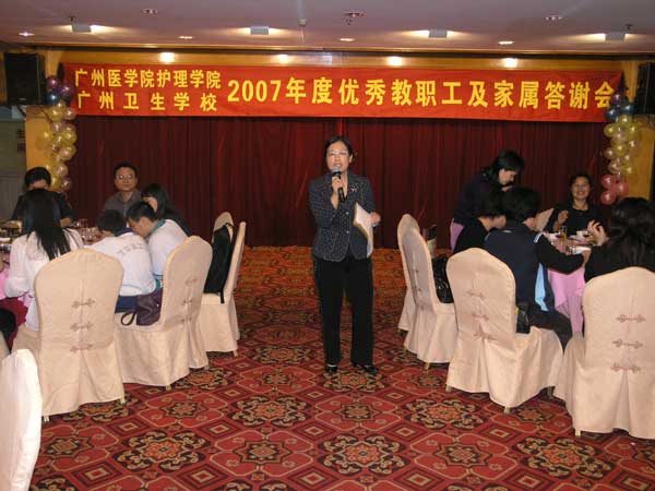 2007年我校工作获得了可喜的成绩。我们顺利完成本科教学工作水平评估,我校首次招收护理硕士研究生,护理专业被评为广东省示范性建设专业,教学质量与科研水平不断提高。校领导们认为这些成绩的获得与各位教职工在教育教学岗位上的无私奉献、艰苦奋斗和家属的支持和理解是分不开的。