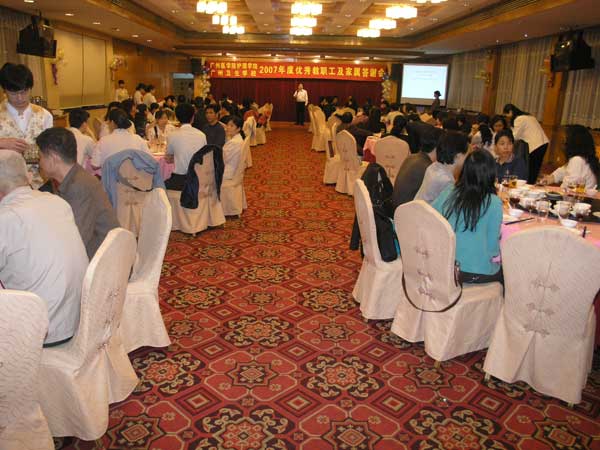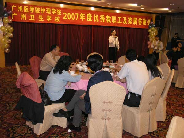 3月28日下午6:00,广州卫生学校2007年度优秀教师家属答谢会在广东迎宾馆举行,全体优秀教师及家属,校领导及中层干部一百人参加了此次活动。