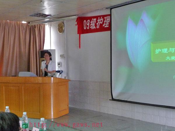 接着,周英副院长讲话,她从专业角度对新生进行了教育,深入浅出的对护理专业进行了详细地介绍;就当前护理毕业生的就业现状及前景作了详细地分析,论述了护理专业的良好就业趋势;周院长引用了一篇歌颂护士的诗歌,对护理专业做了很好的诠释。她的讲话体现了一位护理学者对专业的无限热爱,洋溢着希望和梦想,增强了同学们对护理专业的认识,让同学们明确了学习方向,增强了学习动力。