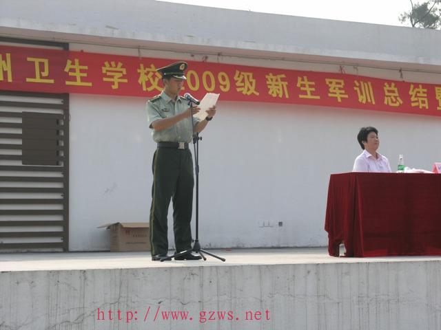 在武警广州指挥学院教官的严格有素的带训以及全校相关部门人员配合下,我校2009级中专新生军训取得圆满成功。9月4日,在总结暨表彰大会上,我校党委陈伟民书记、广州医学院保卫处张少生处长、武警广州指挥学院军训办公室肖兆勇主任及我校各部门相关人员、全体中专新生参加大会。