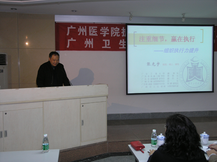 12月7日下午2:30分,我院/校管理干部专题培训系列讲座的第一场在东校区2号楼502室举行,讲座邀请了广东工业大学张光宇副校长作专题培训,讲座的主题是“注重细节,赢在执行”。院/校领导、中层干部、行政管理人员、教研室主任及学部秘书等老师共120人参加了培训。