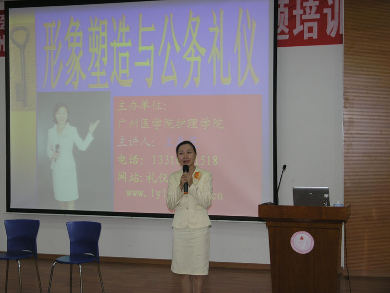 为进一步加强教师职业道德和校园文化建设,培养健康向上的高尚情操,树立良好的职业形象,养成文明的行为举止,根据中层干部培训方案安排,我院/校于12月14日下午2:00在江高校区教学楼11楼报告厅特别邀请到华南地区著名礼仪专家王春芝女士作了“教师形象塑造与公务礼仪”知识讲座。院/校领导及教职工约150人参加了本场讲座。