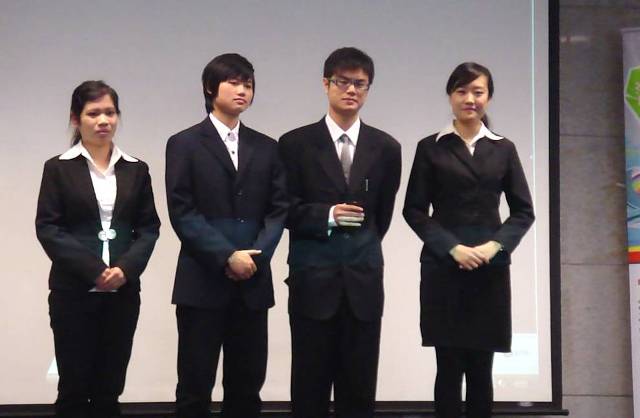 南部赛区预赛比赛风采(左1高杏莲,左2何嘉文,右1邓雨薇,)