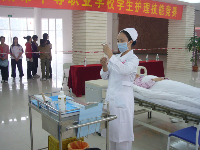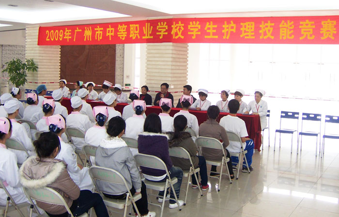 为检阅我市中等卫生职业学校护理专业教学情况,以及选拔人才参加明年3月举办的广东省中等职业学校技能大赛,2009年12月25日,由广州市教育局主办、我校承办的2009年广州市中等职业学校护理专业技能大赛在我校北校区教学办公楼一楼大堂举行。