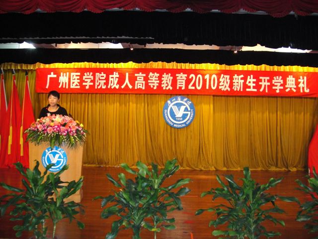 2月27日,我院成人高等教育2010级新生开学典礼在广州医学院体育馆3楼礼堂隆重举行。院领导、相关老师及1219名2010级新生参加了开学典礼。