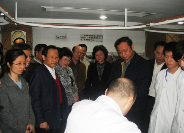 3月26日下午,国家卫生部副部长、国家中医药管理局局长王国强在广东省雷于蓝副省长、广东省卫生厅彭炜副厅长、广州市卫生局王炯烈局长、荔湾区区领导陪同下来到广州荔港国医馆调研中医药技术“进社区、进家庭”开展情况。