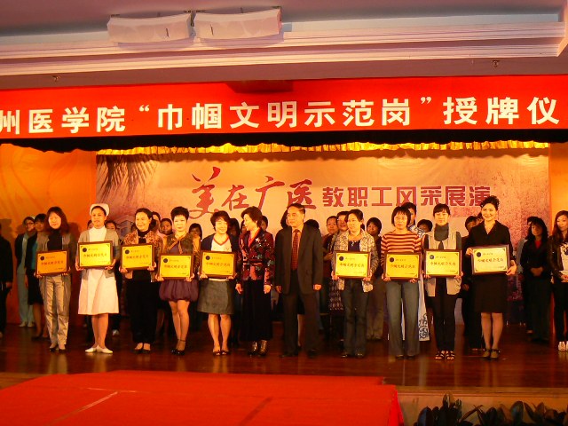 4月26日下午,广州医学院“文明示范岗”授牌仪式暨“美在广医”教职工风采展演在广医体育馆三楼礼堂隆重举行。