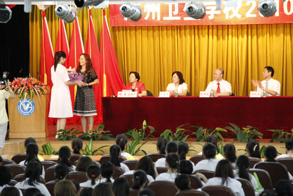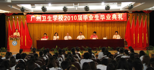 7月2日上午10时,我校在广州医学院体育馆三楼礼堂举行了2010届中专毕业生典礼。广州医学院魏东海副校长、广州市教育局职成处余智德副处长、我校陈伟民书记、陈沁校长、卢穗华副书记、周英副校长、余大敏副校长出席典礼,共同祝贺我校837名学生毕业。典礼仪式由周英副校长主持。