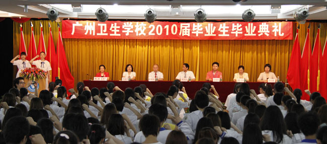 广州市教育局职成处余智德副处长在仪式中对毕业生提出了殷切的希望,希望他们永远记住今天的毕业誓言,为更多的人送去健康,呵护生命,为人类的幸福作出努力,也创造属于自己的辉煌。