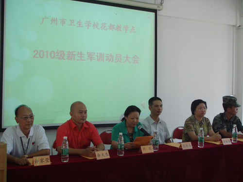 2010年8月30日上午,我校周英副校长率教务科涂腊根副科长、杨大玮老师、学生科许列东副科长、药学学部王桂平主任参加花都教学点新生军训动员大会,并对花都教学点的教学以及实训设施进行实地考察。今年我校新开拓了花都教学点,首届招收了58名药品营销专业方向学生。