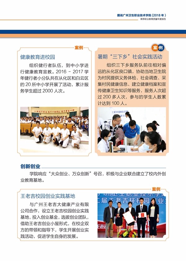 图说广州卫生职业技术学院质量年度报告 作者:招生办 来源: 发布时间:2018-04-03 浏览次数: 次 【字体:小 大】 图说广州卫生职业技术学院质量年度报告(2018)作者:高职教育发展研究中心 卢广巨 分享到: 【打印正文】