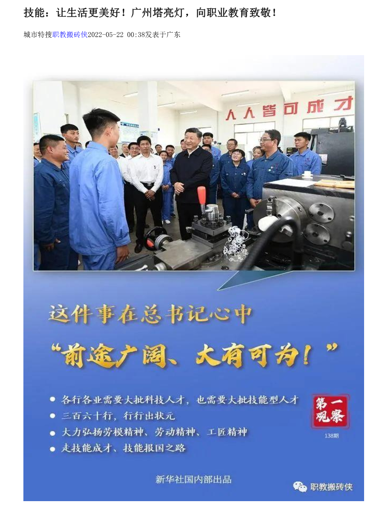 技能:让生活更美好!广州塔亮灯,向职业教育致敬!